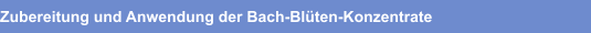 Bestimmen Sie zuerst Ihre individuelle Blüten-Kombination. Tropfen Sie in ein leeres Apothekenfläschchen mit Pipette ca. 2 Tropfen auf 10 ml Inhalt von jeder ausgewählten Essenz und füllen mit etwa 1/4 Cognac oder Obstessig (Mischungen für Kinder) und 3/4 kohlensäurefreies (stilles) Mineralwasser auf.
